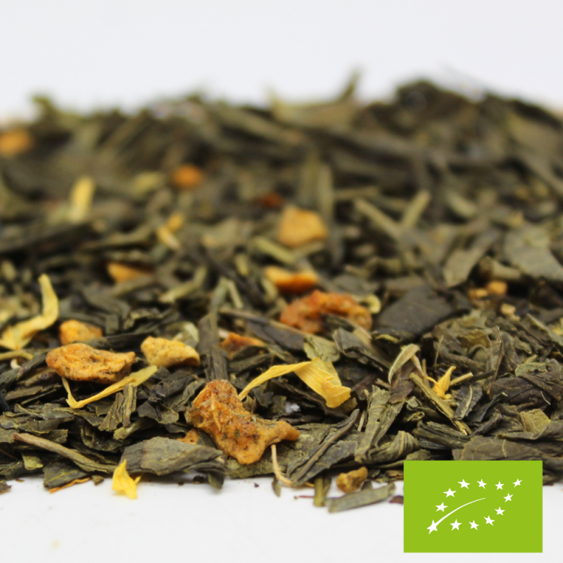 Ingrédients : Thé* vert de Chine Sencha, arôme naturel, fleurs de souci*, pêche* 2%.